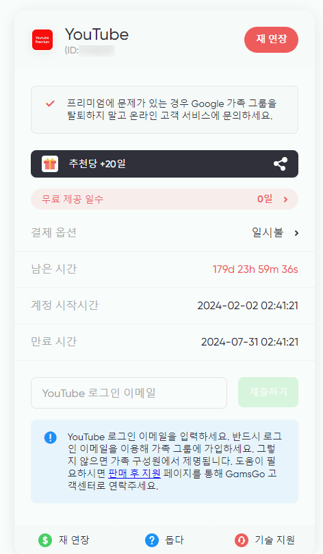OTT 구독료 겜스고를 이용하는 방법은 매우 간단합니다. 먼저, 겜스고 웹사이트에 접속한 후, 구글 계정으로 간편하게 가입하면 됩니다. 이후 원하는 OTT 상품을 선택하고, 프로모션 코드 입력란에 할인 코드를 입력하면 추가 할인을 받을 수 있습니다. 결제가 완료되면, 발급된 계정을 통해 넷플릭스나 유튜브 프리미엄에 로그인하여 서비스를 이용할 수 있습니다.