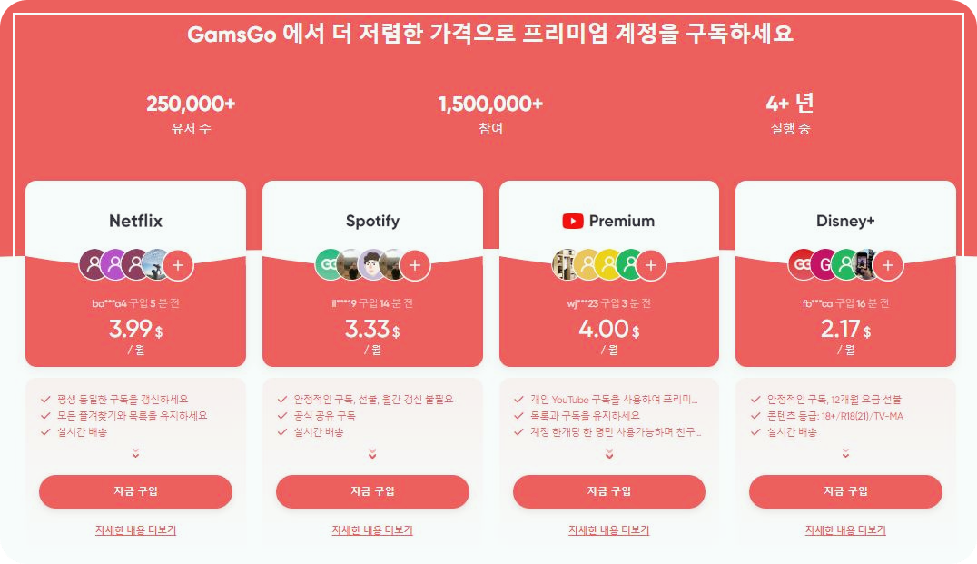 아래 버튼을 눌러 넷플릭스, 유튜브등 정가2만원에서 월4천원으로 저렴하게 이용해 보실 수 있습니다.