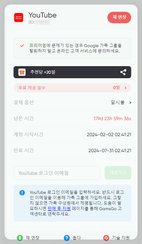 겜스고를 통해 넷플릭스 프리미엄 요금제를 구독하면, 로그인 가능한 아이디와 비밀번호를 부여받아 해당 계정으로 넷플릭스를 이용할 수 있습니다. 뿐만 아니라 디즈니플러스, 유튜브 프리미엄 등 다양한 OTT 서비스도 저렴하게 이용할 수 있어 경제적인 부담을 줄일 수 있습니다.
