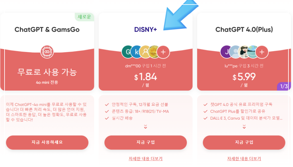 겜스고는 여러 사용자가 OTT 플랫폼의 계정을 공유하여 비용을 나누는 서비스입니다. 넷플릭스, 유튜브 프리미엄, 스포티파이 등 다양한 서비스에 적용되며, 디즈니플러스도 포함되어 있습니다. 이 서비스를 이용하면 여러 사람과 계정을 공유하면서 구독료를 절감할 수 있습니다. 겜스고의 웹사이트에 접속하여 회원가입 후 원하는 OTT 서비스를 선택하고 결제하면 됩니다. 이 과정에서 다른 사용자와 프로필을 공유하게 되므로, 이를 염두에 두고 진행해야 합니다.