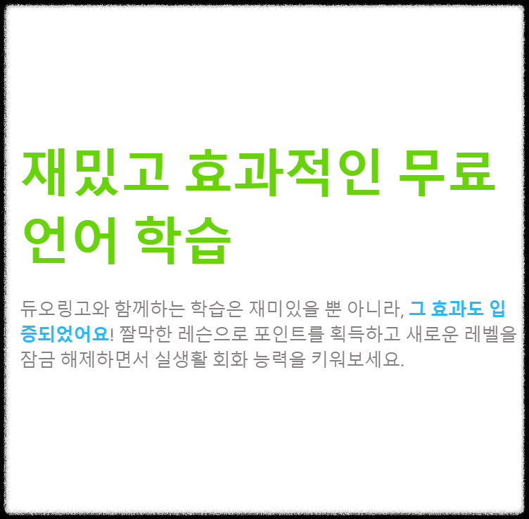 듀오링고는 재미있게 영어를 배울 수 있는 앱으로, 다양한 기능과 할인 혜택 덕분에 저렴하게 이용할 수 있습니다. 영어 공부를 고민하고 있다면, 듀오링고와 겜스고의 할인 혜택을 활용해보세요. 여러분도 저와 함께 즐겁게 영어 공부를 시작해보시길 바랍니다.