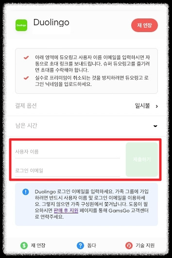 듀오링고를 저렴하게 이용할 수 있는 방법 중 하나는 겜스고를 통한 할인입니다. 기본적으로 월 1.50달러로 제공되지만, 할인코드 KUHMH를 적용하면 훨씬 저렴하게 이용할 수 있습니다. 6개월 결제 시 한 달 1.46달러, 12개월 결제 시 한 달 1.14달러로 이용할 수 있습니다.