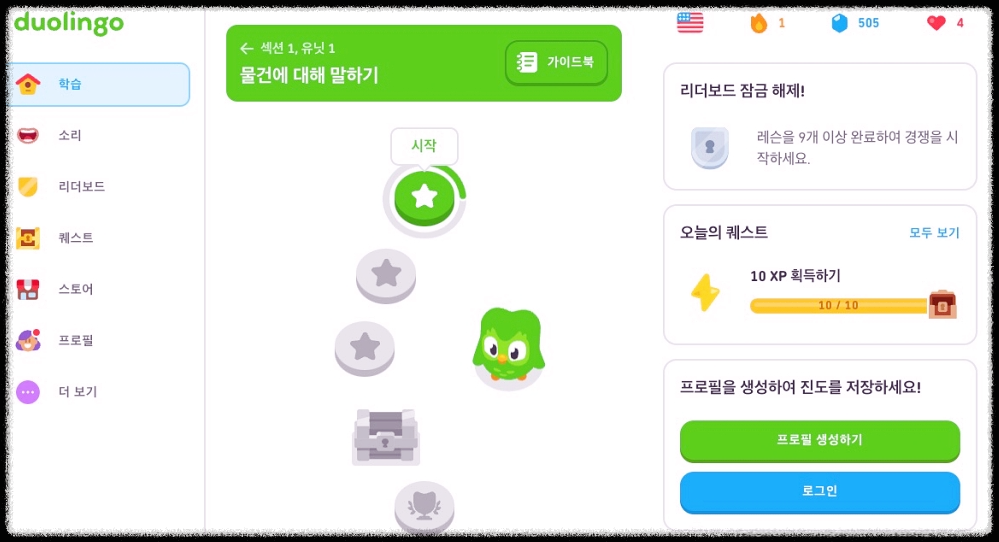 그래서 가장 효과적인 방법인 1:1 화상영어 수업을 고려했지만, 일정이 바쁜 저에게는 쉽지 않은 선택이었습니다. 결국, 영어 공부 앱을 사용해보기로 결심했죠. 그 중에서 선택한 것이 듀오링고입니다. 몇 년 전에도 영어 공부 앱을 다운로드했지만 유료 결제 요구에 삭제했던 기억이 있습니다. 이번에는 진지하게 시작해보려 합니다. 과연 듀오링고가 저의 영어 실력을 향상시켜줄 수 있을까요?