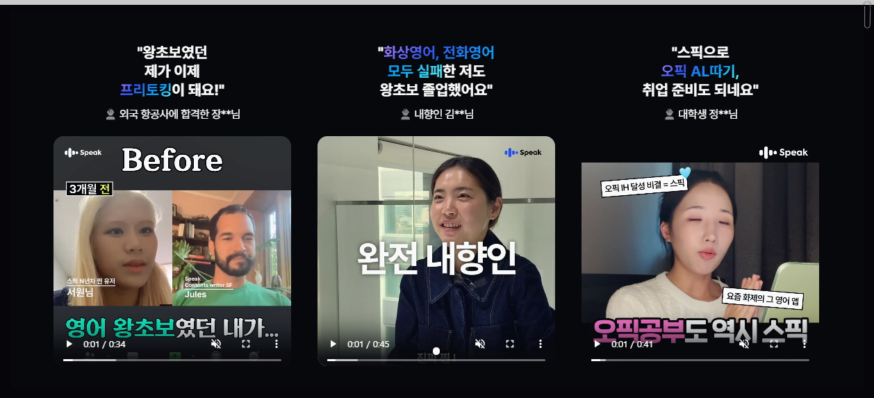 각 어플에 대한 사용자들의 후기는 대체로 긍정적입니다. 스픽은 AI 튜터와의 대화 기능이 특히 호평을 받고 있으며, 많은 사용자들이 실시간 피드백을 통해 영어 회화 능력이 향상되었다고 언급하고 있습니다. 케이크는 짧고 재미있는 영상 덕분에 학습이 지루하지 않다는 점에서 높은 평가를 받고 있습니다.