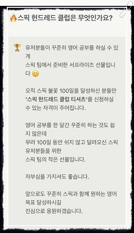 영어 공부는 단순히 언어를 배우는 것이 아니라, 자신감을 키우고 새로운 기회를 여는 과정입니다. 스픽과 함께 매일 조금씩 성장하며, 영어를 자유롭게 구사할 수 있는 자신감을 얻으시길 바랍니다. 여러분의 영어 학습 여정이 즐거운 경험이 되길 바랍니다.