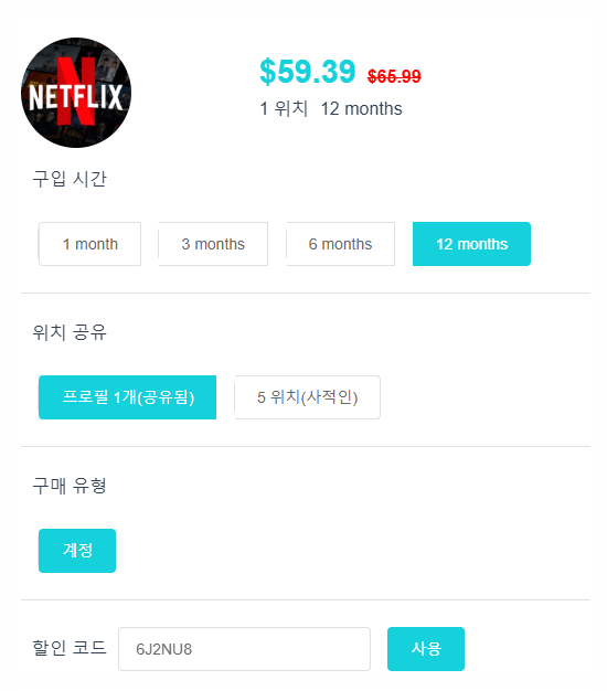 구독 신청 화면에서 할인 코드 6J2NU8 를 입력하면 10% 추가 할인을 받을 수 있습니다. 예를 들어, 12개월 + 4개월 옵션을 선택하면 약 43.99달러가 39.59달러로 감소합니다.