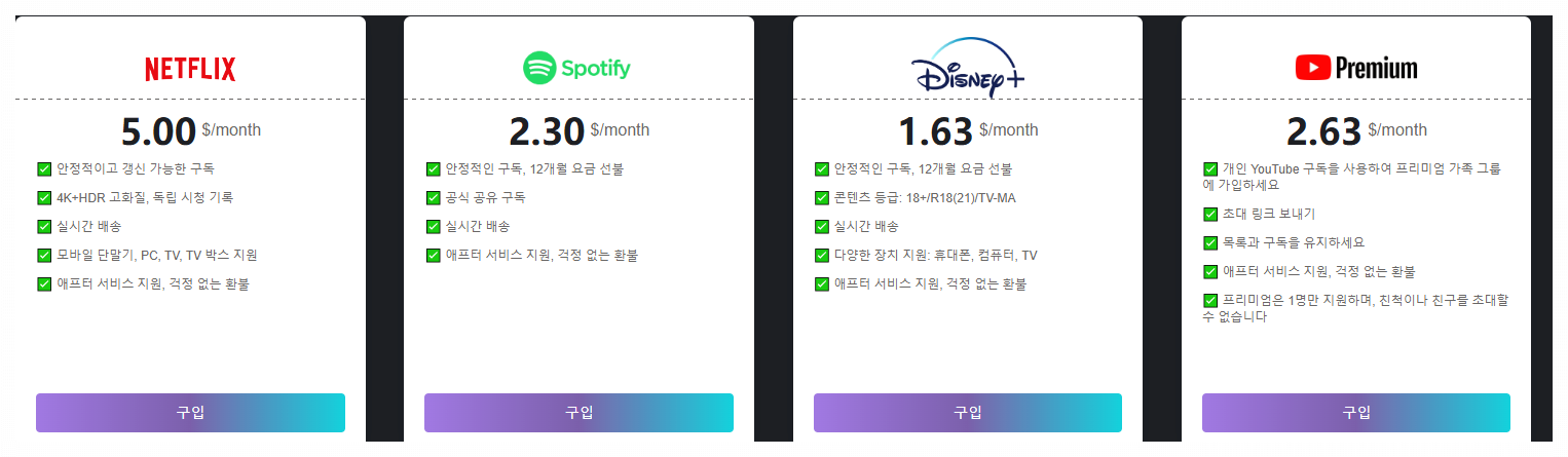 이는 가족 그룹을 활용하여 비용을 절감할 수 있는 서비스로, 다양한 플랫폼에서 매력적인 가격을 제공합니다. 아래의 비교표를 통해 이를 확인할 수 있습니다: