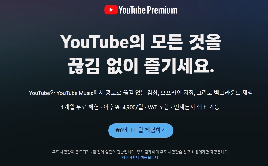 유튜브 프리미엄 55,000원 6/12/개월 선불