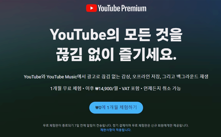| 유튜브 프리미엄 | 55,000원 | 6/12/개월 | 선불 |