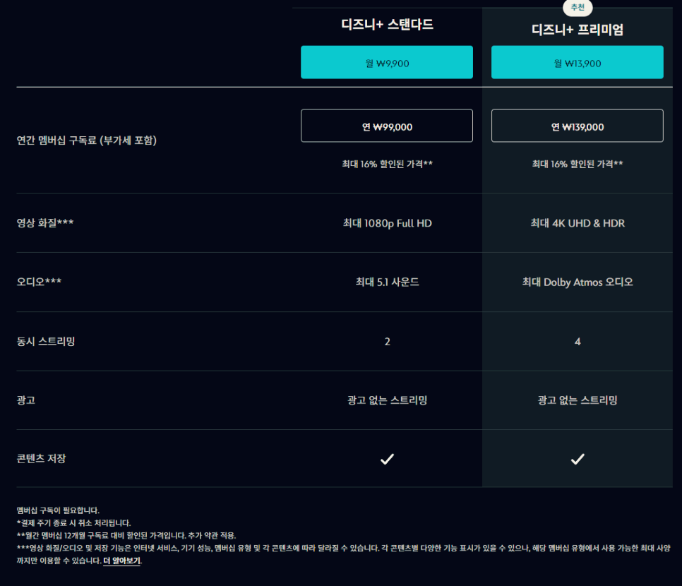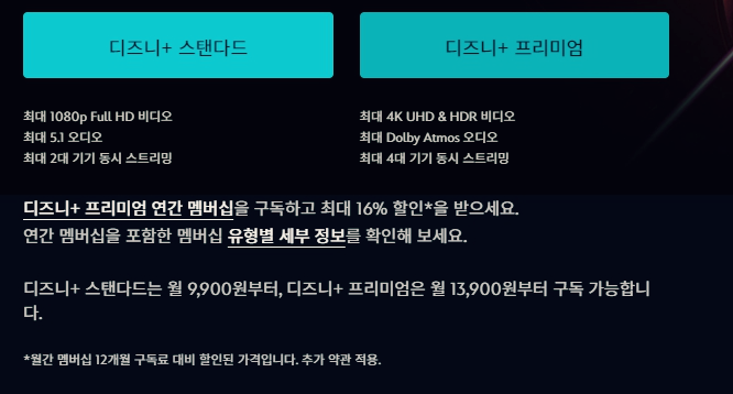 | 디즈니 플러스 | 36,000원 | 12개월 | 선불 |