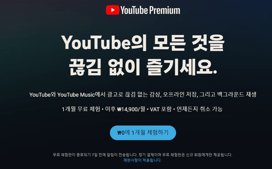 | 유튜브 프리미엄 | 55,000원 | 6/12/개월 | 선불 |