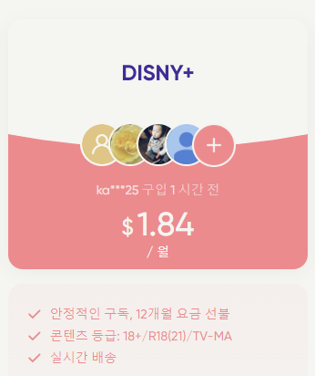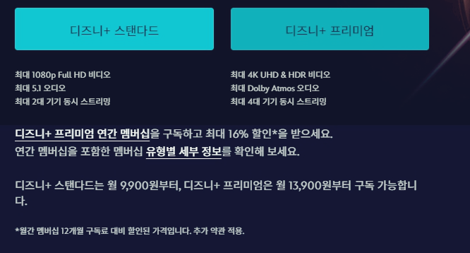 | 디즈니 플러스 | 36,000원 | 12개월 | 선불 |