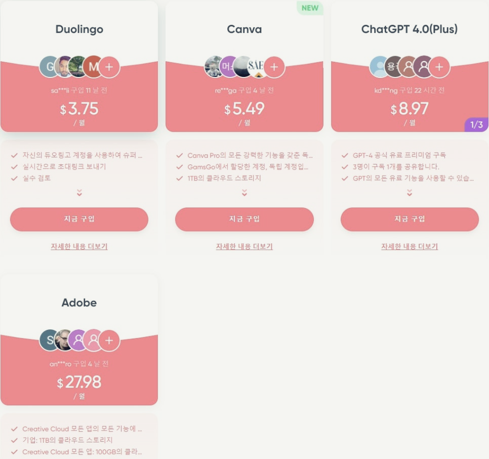 겜스고는 디즈니플러스 외에도 넷플릭스, 유튜브 프리미엄, 오피스 365, 캔바, 어도비와 같은 다양한 실용적인 서비스도 저렴한 가격에 제공합니다. 이러한 다양한 서비스는 소비자들에게 더 많은 선택지를 제공하며, 여러 플랫폼을 이용할 수 있는 기회를 제공합니다.