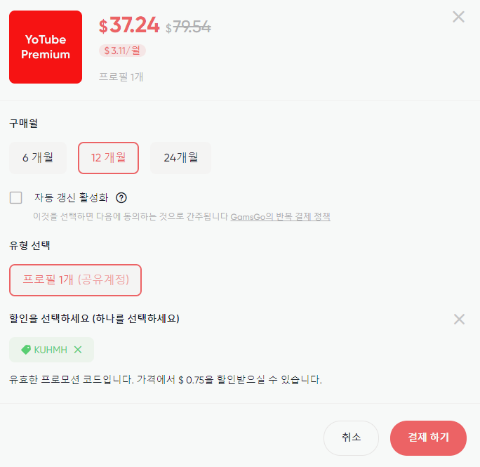 이 상황은 다소 억울하게 느껴질 수 있지만, 다행히도 겜스고를 이용하면 한국에서도 가족 멤버십을 통해 저렴하게 유튜브 프리미엄을 구독할 수 있습니다.
