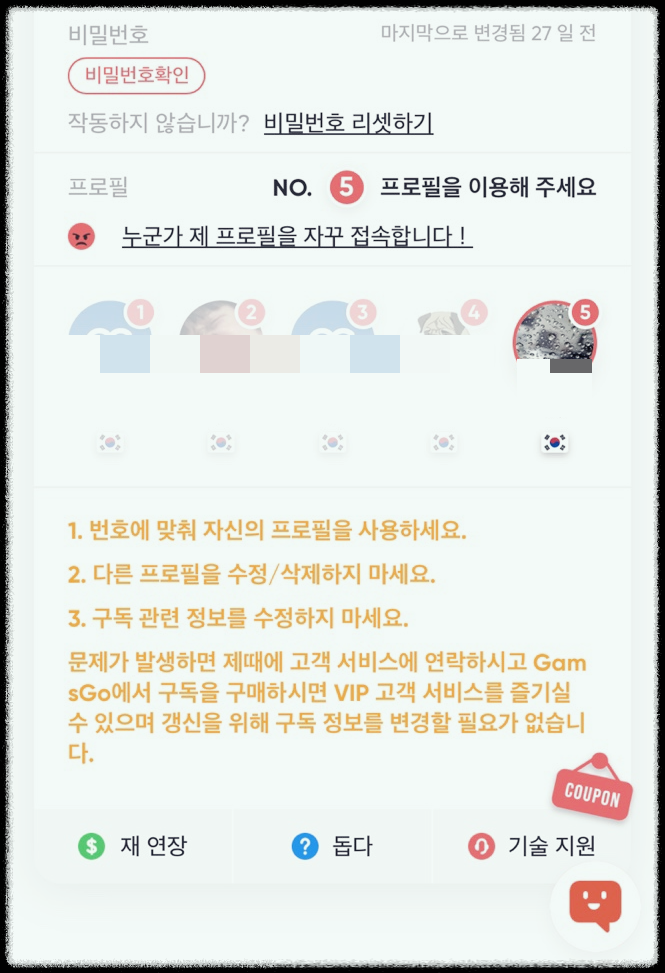 결제를 진행한 후에는 겜스고 홈페이지 내에서 자신의 프로필을 클릭하고 '나의 구독' 탭에 들어가면 됩니다. 여기에서 넷플릭스 로그인에 필요한 아이디와 비밀번호를 확인할 수 있습니다. 비밀번호가 작동하지 않을 경우, 비밀번호 리셋 기능도 제공되어 사용자 편의성이 더욱 높습니다.