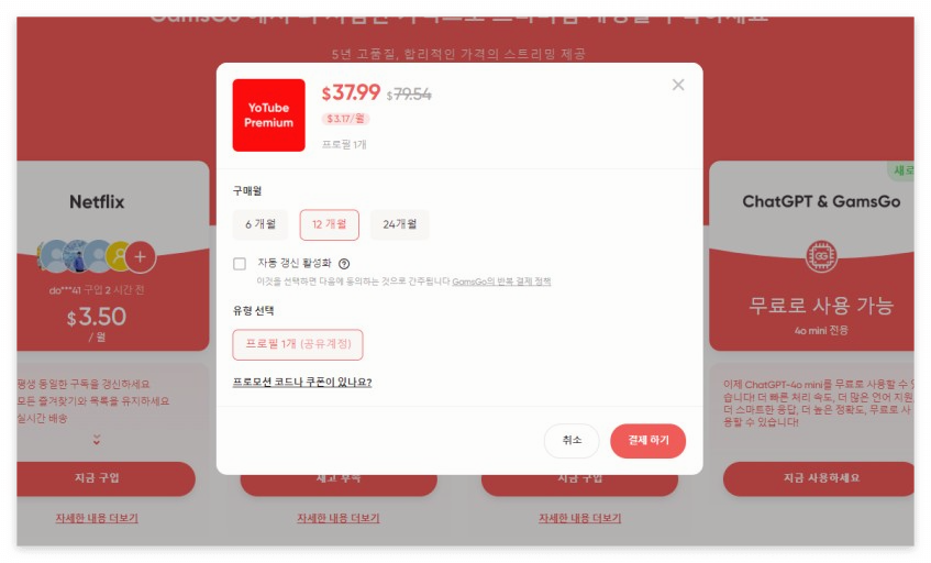 Q2: 겜스고를 통해 넷플릭스와 유튜브 프리미엄을 구독하면 얼마나 저렴한가요?