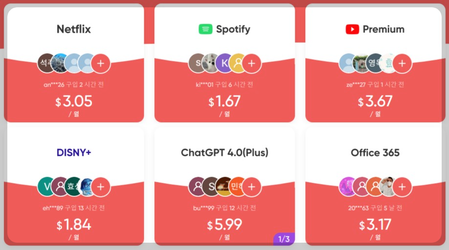 | 디즈니플러스 | $2.17 | 약 2,900원 |