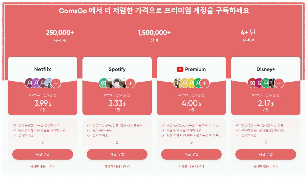 넷플릭스 우회 제가 사용하는 방법은 OTT 공유 플랫폼인 겜스고를 활용하는 것입니다. 이 플랫폼은 이미 5년 전부터 많은 사람들이 이용해왔고, 비공식적으로 알려진 서비스입니다. 최근 요금제가 상승하면서 계정 추가 요금이 생기면서 점점 더 많은 사람들이 이 플랫폼을 인식하게 되었습니다. 하지만 이 글을 읽으시는 분들은 아직 이 방법을 모르실 수 있으니, 제가 그 요금제에 대해 자세히 설명드리겠습니다.
