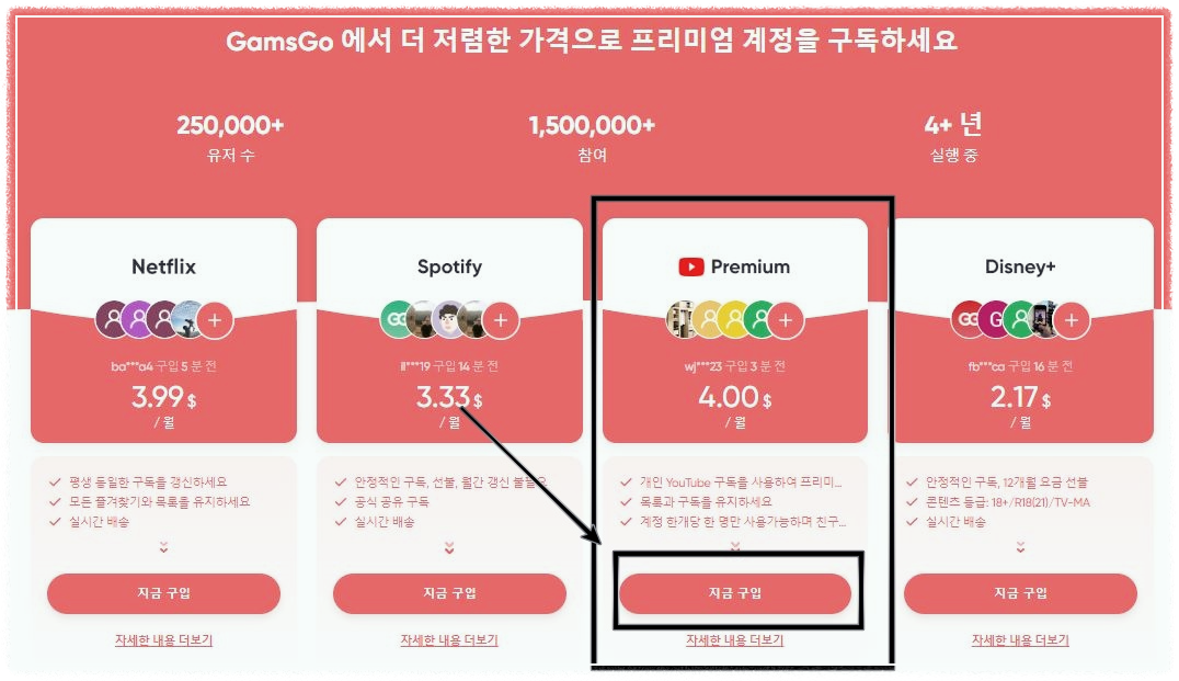 A: 겜스고는 넷플릭스를 포함한 다양한 OTT 서비스의 구독료를 나누어 낼 수 있는 구독 공유 플랫폼입니다. 프리미엄 요금제를 여러 사용자와 공유하는 방식으로, 각자의 요금을 크게 절감할 수 있습니다. 안정적인 서비스로 자리 잡았으며, 가입 후 바로 사용이 가능하고 24시간 이내 환불도 지원하여 안심하고 이용할 수 있습니다.