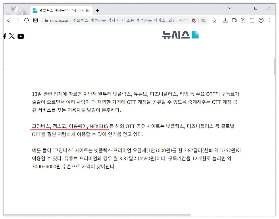 만약 겜스고의 넷플릭스 이용이 막혀있다면 가격과 기능이 일치하는 네픽스버스(nfxbus)를 이용해주세요.