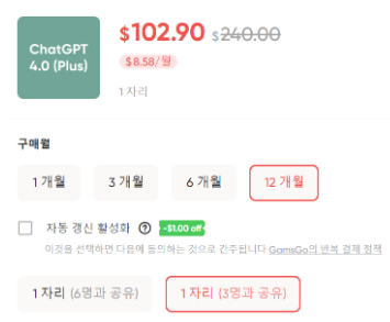 | 겜스고 챗지피티 4.0 가격 (✔️ 3명 공유) | |
