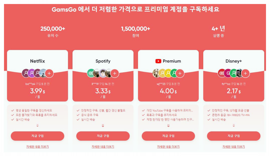 A: 네, VPN을 사용하지 않고도 유튜브 프리미엄을 저렴하게 이용할 수 있는 대안이 있습니다. 예를 들어, 겜스고와 같은 OTT 공유 서비스를 이용하면, 여러 사용자가 하나의 프리미엄 계정을 나눠서 사용하여 구독료를 절감할 수 있습니다. 이러한 서비스는 법적 문제 없이 안전하게 이용할 수 있어, VPN을 사용하지 않고도 저렴하게 유튜브 프리미엄을 이용할 수 있는 좋은 방법입니다.