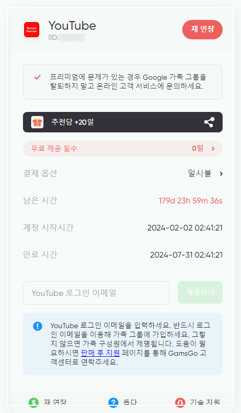 A: 가입 후 개인 구글 계정으로 유튜브 프리미엄을 사용할 수 있습니다. 겜스고에서는 기존의 개인 계정을 그대로 사용하므로, 별도의 계정 설정이나 변경 없이 광고 없는 유튜브 프리미엄을 사용할 수 있습니다.
