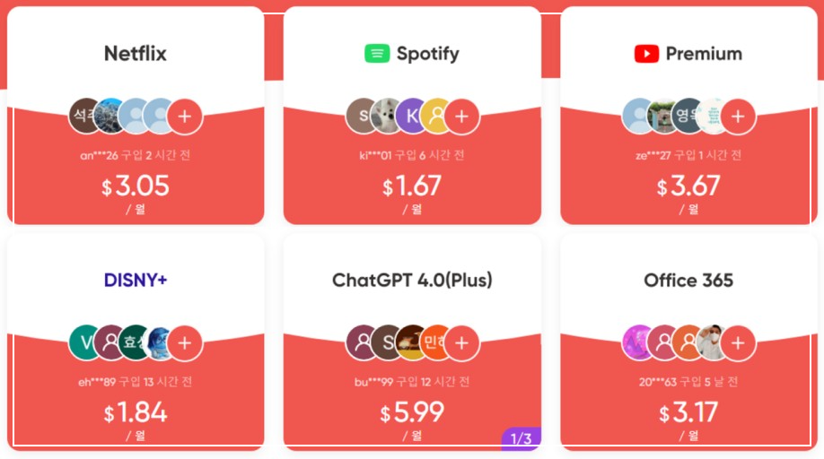 | 디즈니플러스 | $2.17 | 약 2,900원 |