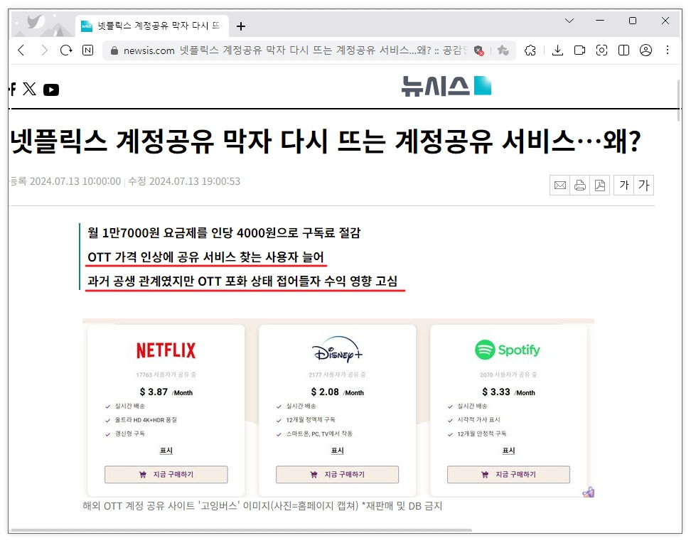 | 스포티파이 | $3.33 | 약 4,400원 |