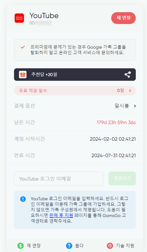 비활성화 문제가 발생했을 때는 겜스고의 구독 페이지로 이동하여 문제를 보고하고 해결 방법을 선택해야 합니다. 주로 선택할 수 있는 방법은 새로운 넷플릭스 계정으로 교체하는 것이며, 이 외에도 다른 구독으로 전환하거나 환불을 요청할 수 있습니다. 만약 교체 가능한 계정이 바로 없다면 대기 시간이 필요할 수 있습니다. 이 경우, 대기한 일수만큼 구독 기간이 연장될 수 있습니다.