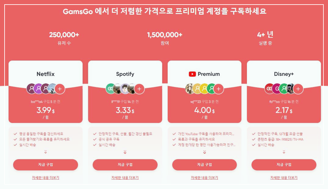 VPN을 통한 우회 가입이 어려워진 지금, '겜스고'와 같은 공유 서비스를 활용하는 것이 좋은 대안이 될 수 있습니다. 이 서비스는 약 5년간 안정적으로 운영되어 왔으며, 필자도 2년 반 동안 문제없이 사용해왔습니다. 겜스고는 VPN을 사용하지 않고 현지에서 직접 가입한 계정을 공유하는 방식으로, 차단 걱정 없이 안전하게 유튜브 프리미엄을 이용할 수 있는 방법입니다.